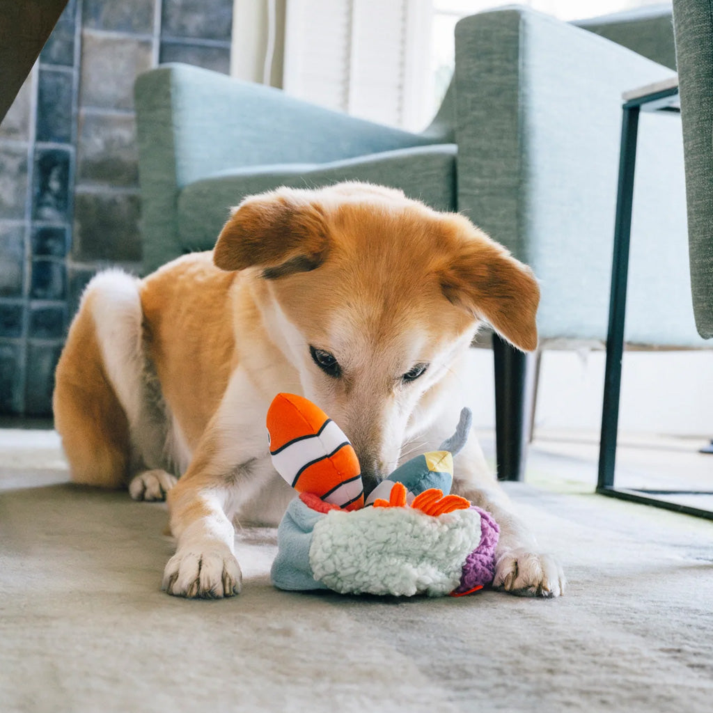 Dive into interactive play with Play’s Ocean Buddies Reef Retreat, a colorful coral reef paired with two detachable fish pals. Designed to mimic reef-style hide-and-seek fun, this multi-toy set invites pups to fetch, tug and discover new ways to play beneath the waves.