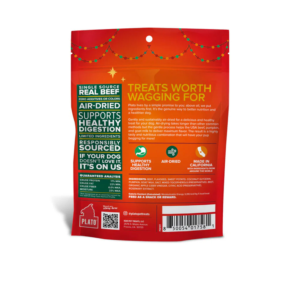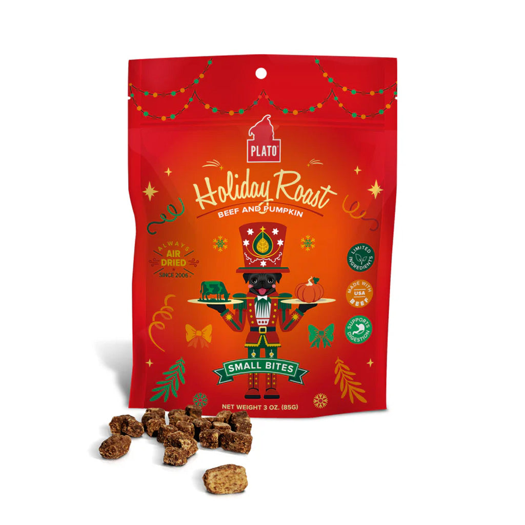Celebrate the season with a taste of the holidays! Our Holiday Roast treats are made with real beef and pumpkin, delivering a delicious, savory-sweet bite your furry friend will love. Perfect for sharing the holiday spirit, these wholesome treats are crafted with simple, high-quality ingredients—because every good pup deserves a festive feast!