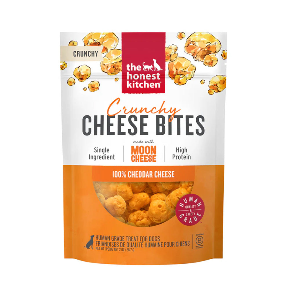 Crunchy Cheddar Cheese Bites 2oz. Nothing but cheese, please. 100% real cheese, Just 1 ingredient, Human grade, no corn, wheat or soy.