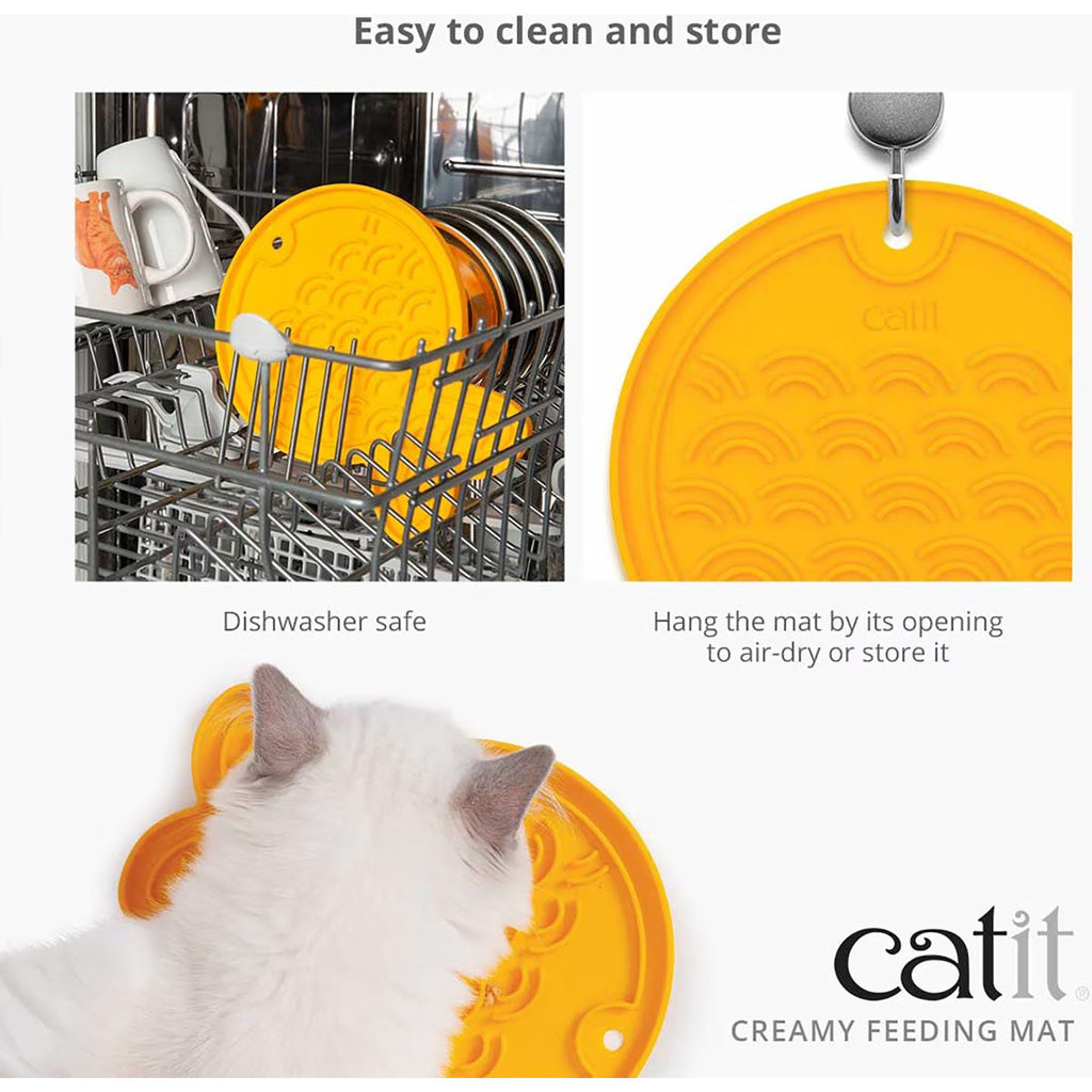 - When your cat has finished their treat, simply place the feeding mat in the dishwasher for easy cleaning.